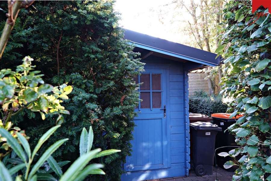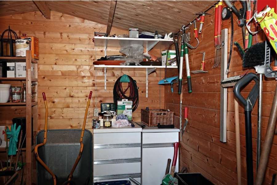 Im Außenbereich gehört ein liebevoll angelegter Garten, zwei Terassen und ein Gartenhäuschen zur Immobilie.