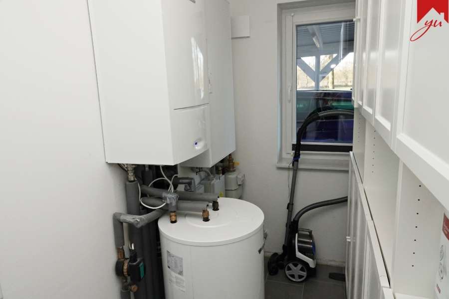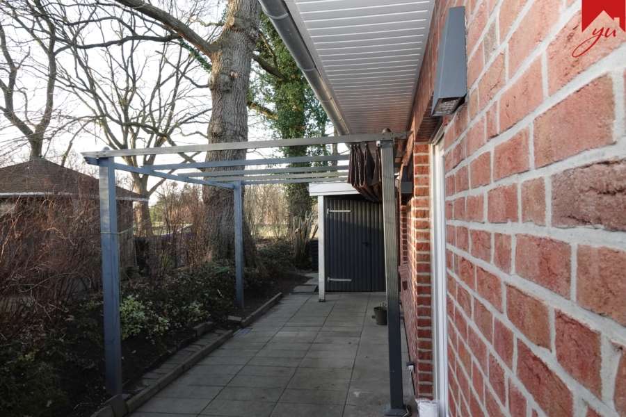Im Außenbereich gehört ein pflegeleichter angelegter Garten, eine Terrasse, ein externer Abstellraum sowie ein Carport-Stellplatz dazu.