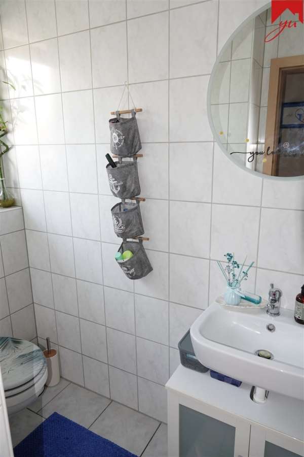 Im Obergeschoss befindet sich ein kleiner Flur, ein Schlafzimmer mit Zugang zum Balkon, ein weiteres Zimmer sowie ein Badezimmer mit Dusche.