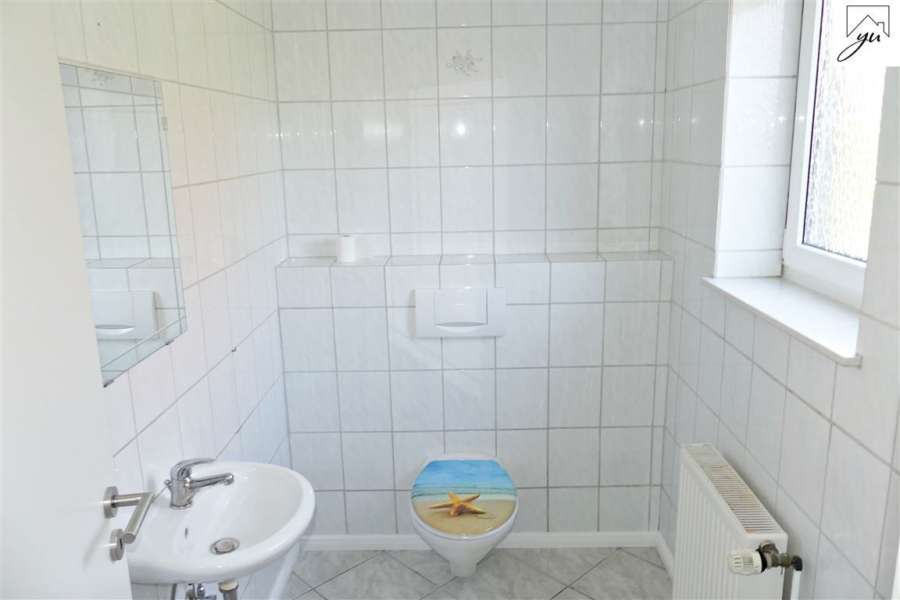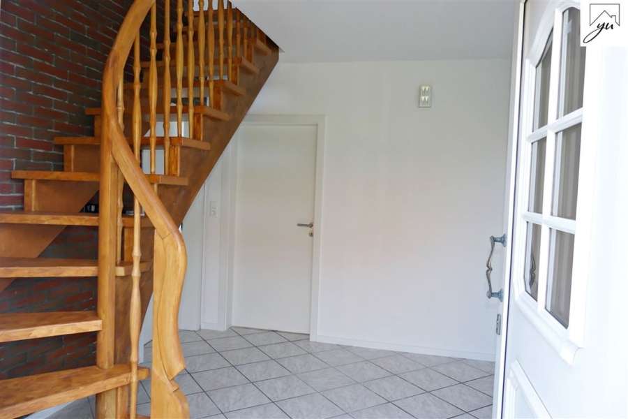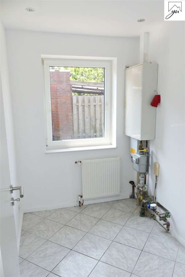 Das Erdgeschoss ist aufgeteilt in einen Wohnungseingangsbereich, eine Küche mit neuwertiger Einbauküche und Zugang zur Terrasse und zum Garten, einem geräumigen Wohnzimmer, einem Gäste- WC und einem Hauswirtschaftsraum mit Waschmaschinen- und Trockneranschluss.