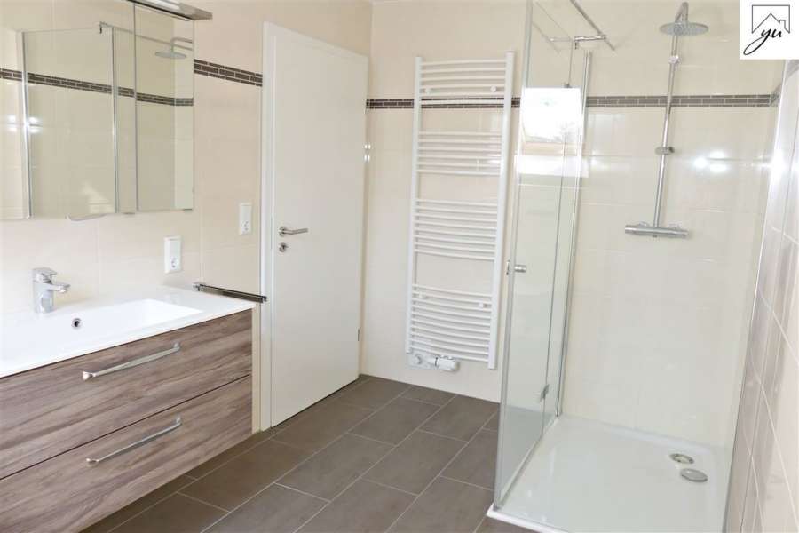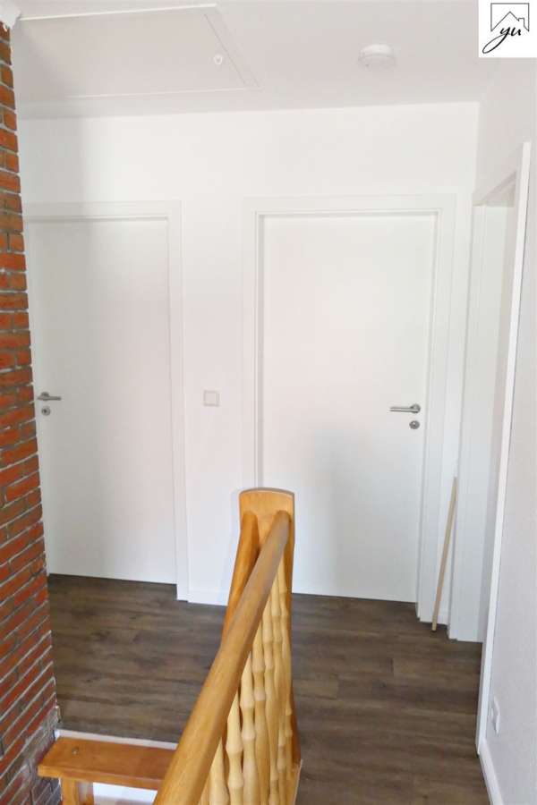 Im Obergeschoss befindet sich ein helles Schlafzimmer, sowie zwei weitere Zimmer und ein neuwertiges Badezimmer mit Dusche.