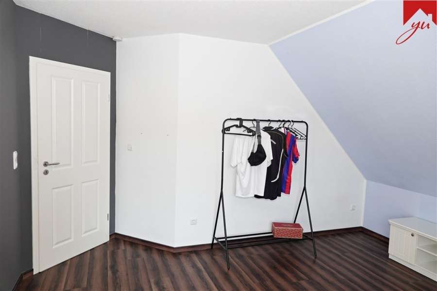 Im Obergeschoss befinden sich zwei Kinderzimmer, ein großes Schlafzimmer mit angrenzendem Ankleidezimmer sowie ein Wohlfühlbad mit ebenerdiger Dusche und Eckbadewanne.