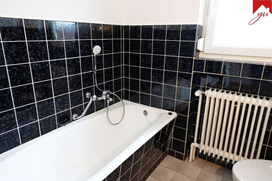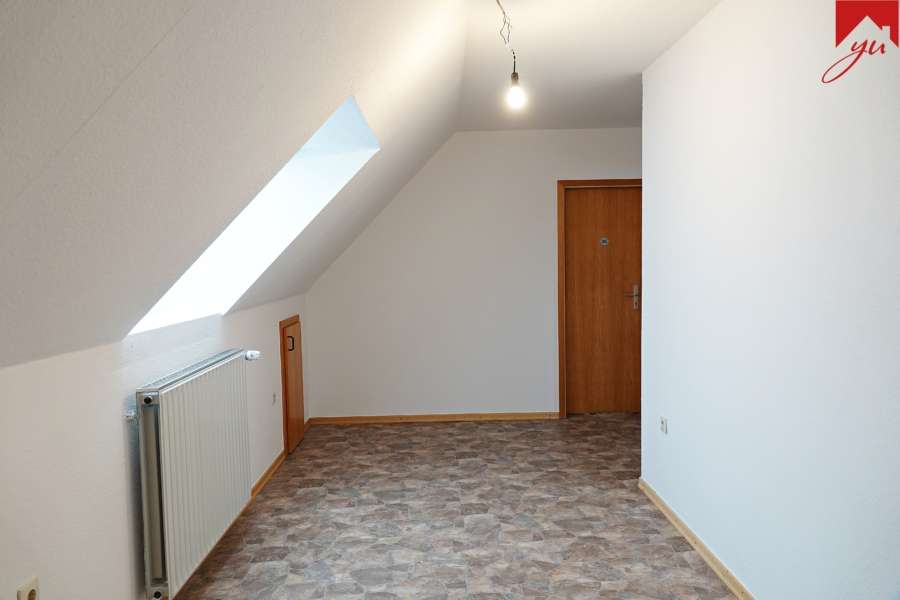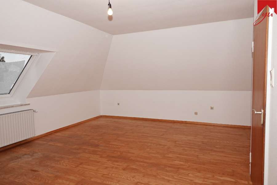 Im Obergeschoss befinden sich vier Zimmer im Rundlaufgrundriss und ein Badezimmer mit Tageslicht und Badewanne.
