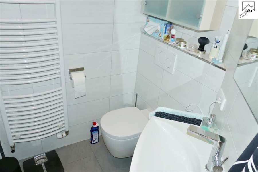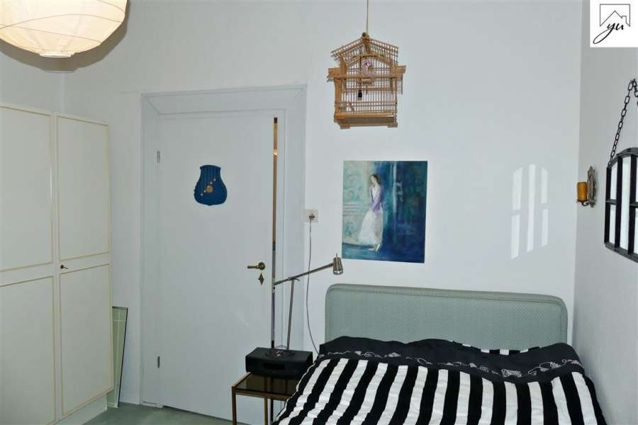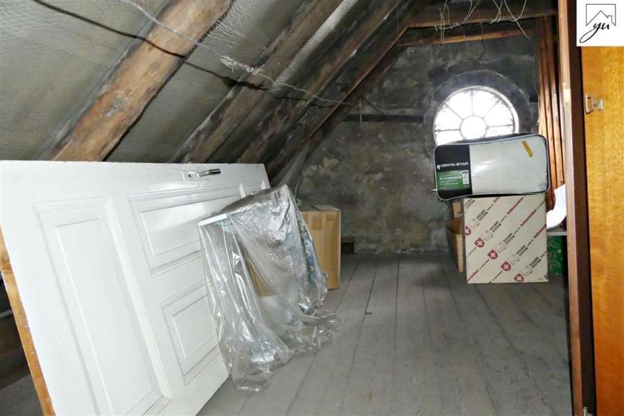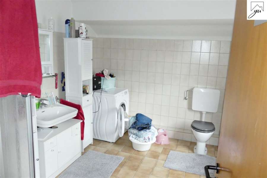 Im Obergeschoss befindet sich noch eine weitere Wohnung, welche einen separaten Eingang vom Außenbereich hat. Diese ist aufgeteilt in: einen Eingangsbereich, einen Treppenaufgang, einen Flur mit einer Küchenzeile, einem Schlafzimmer mit direktem Zugang zum Badezimmer, einem Wohnzimmer mit Zugang zur sonnigen Dachterrasse und einem Abstellraum. Vom Flur aus ist zudem ein Dachbodenanteil zu erreichen.