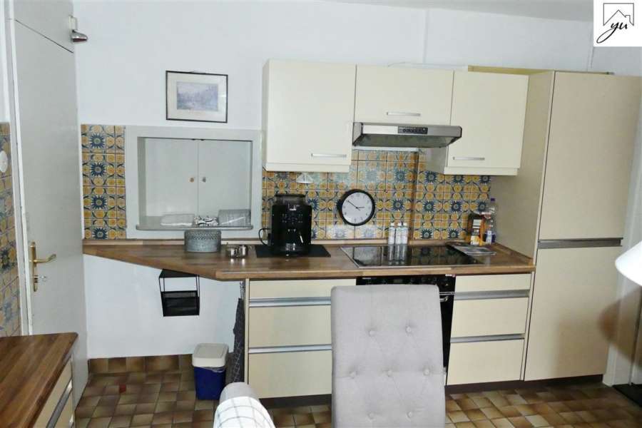 Das kleine Apartment besteht aus einem Zimmer mit einer kleinen Küchenzeile, sowie einer Toilette mit separater Dusche.