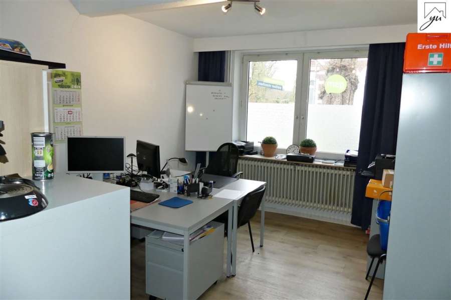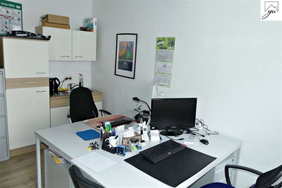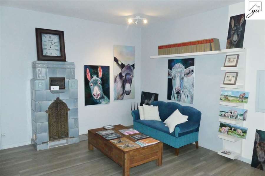 Die Gewerbeeinheit ist großzügig und hell aufgeteilt in: einen wunderschönen, hellen Eingangsbereich, zwei große Ausstellungsräume, einen Büroraum, einem gemütlichen Sitzungszimmer mit Zugang zur sonnigen Gartenterrasse, einem weiteren Zimmer, einem Wannenbad sowie einer Küche mit Einbauküche.