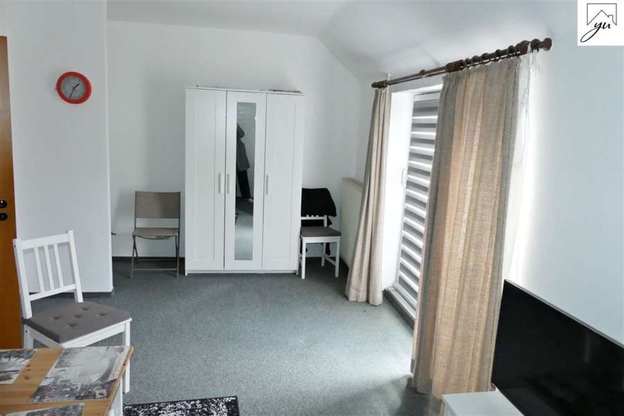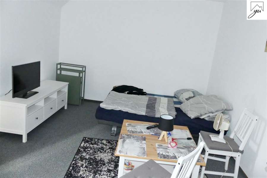 Eine weitere Wohneinheit im Obergeschoss wird derzeit als Monteurswohnung genutzt und teilt sich auf in: einen Wohnungsflur, ein Wohn- und Schlafzimmer mit Zugang zur Dachterrasse, einer Küche und einem sanierten Badezimmer.