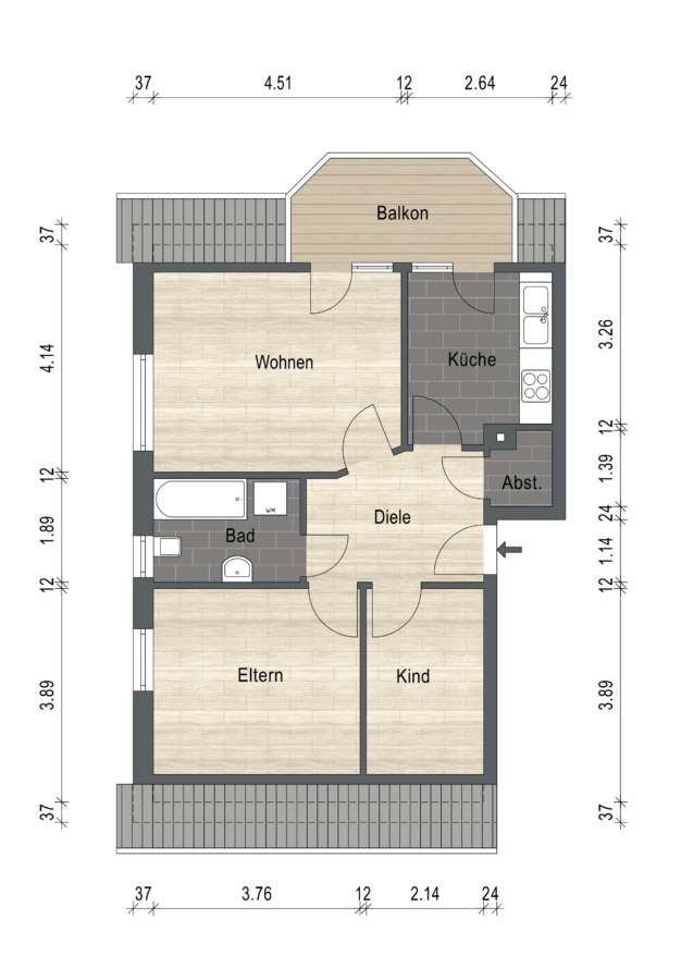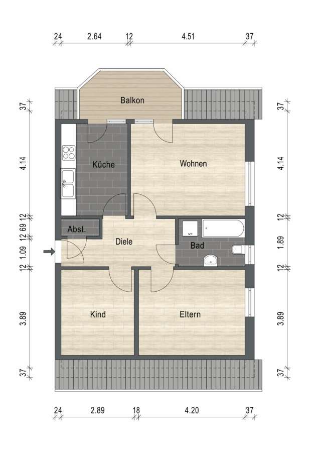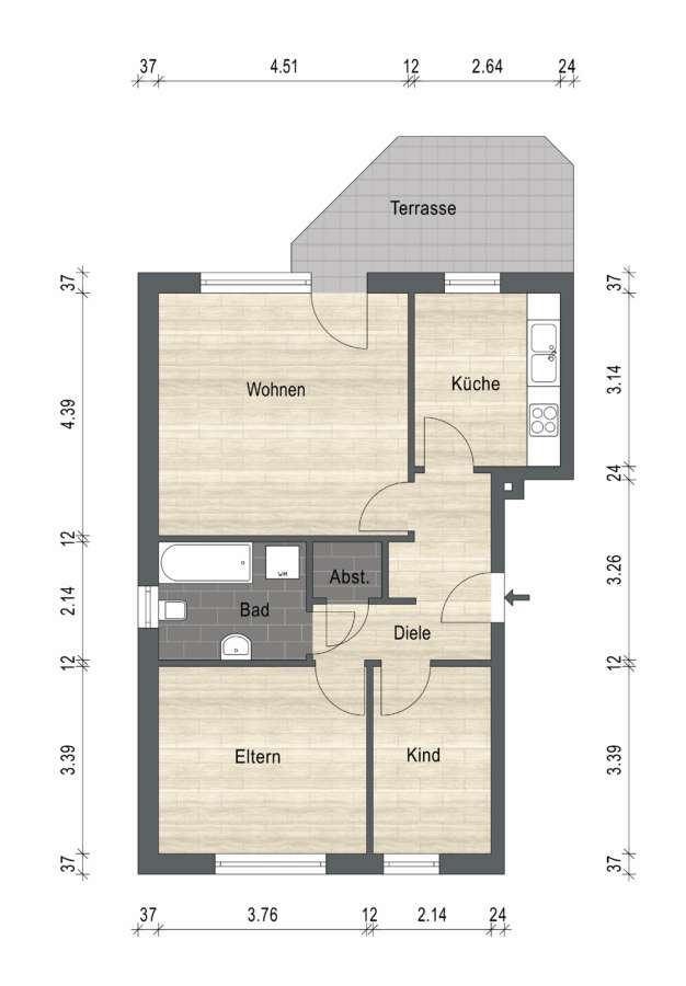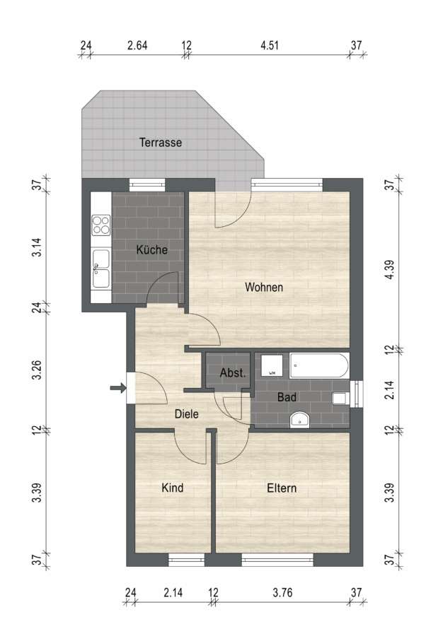Die Wohnungen sind über einen Hauseingang mit separaten Wohnungstüren über das Treppenhaus zu erreichen. Im Gemeinschaftsflur befinden sich die Hausanschlüsse und separaten Zähler sowie der separate Heizungsraum.