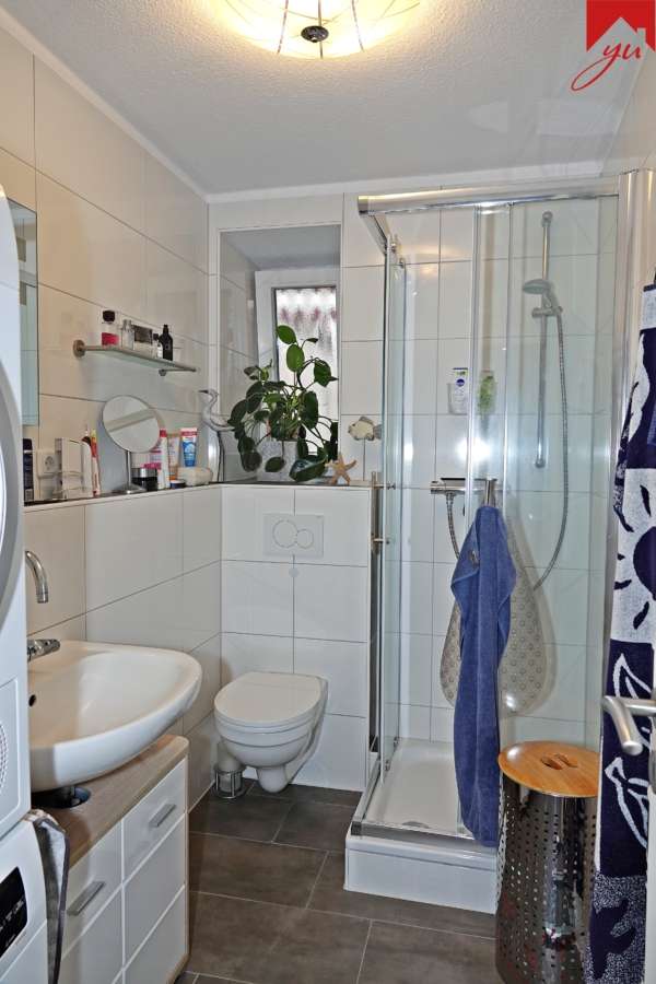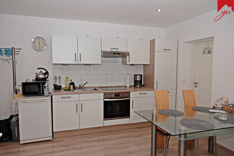 Wohnung 2: Diese Wohnung hat eine Größe von 51 m² und teilt sich auf in eine offene Küche mit einer Einbauküche und einem offenen Wohn- und Essbereich, einen Flur, ein Schlafzimmer, ein ansprechendes Duschbad sowie einen Abstellraum. Im Außenbereich gehört ein externer Abstellraum sowie ein PKW- Stallplatz zu der Wohnung.
