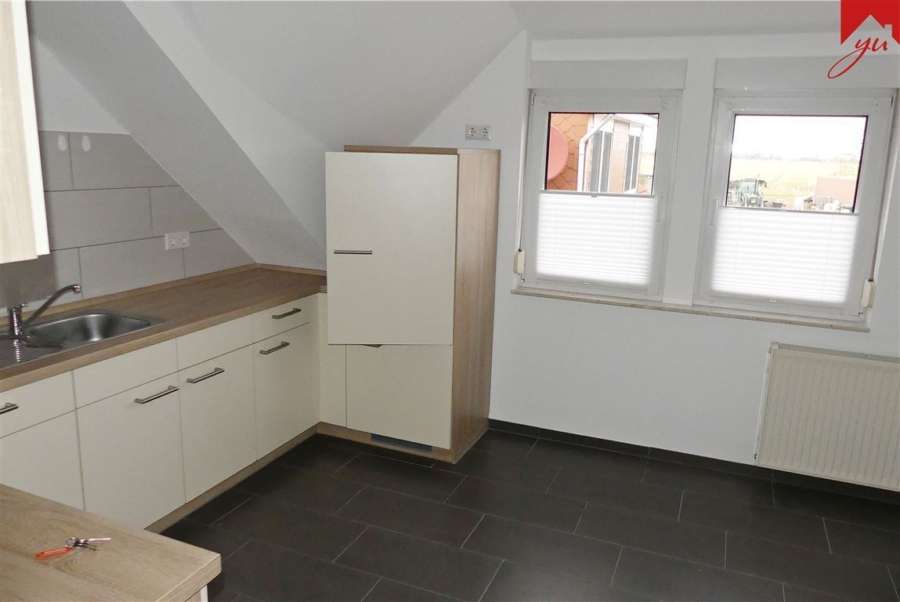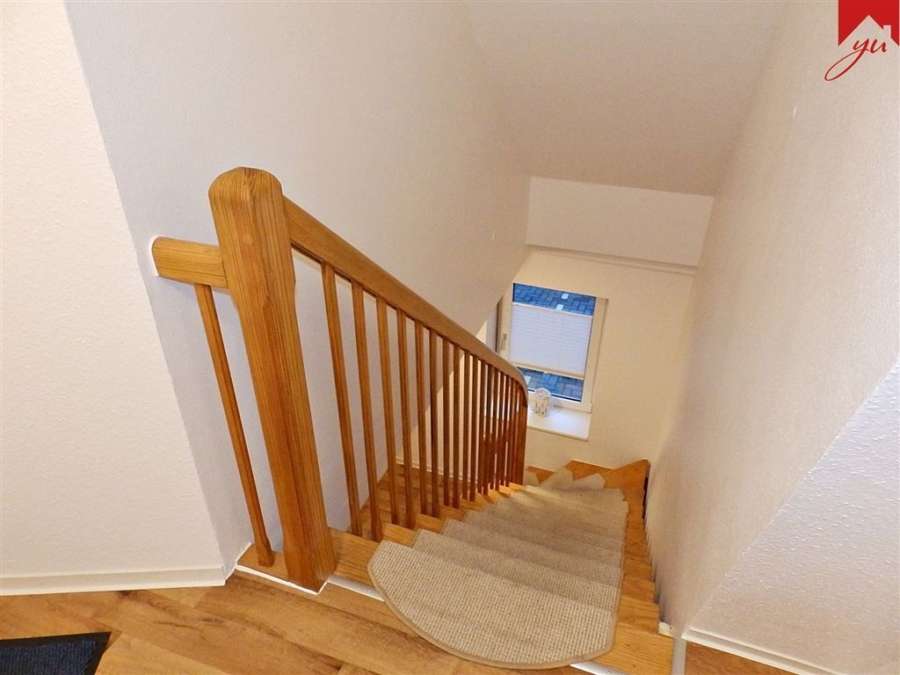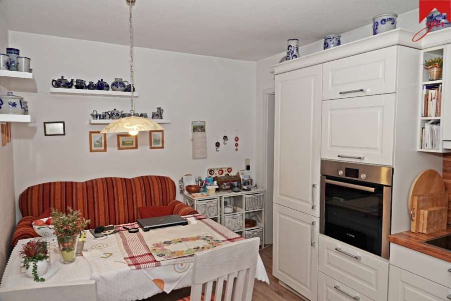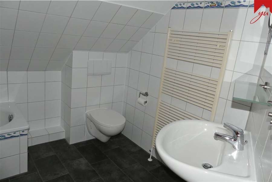 Weiter gehört ein sonniger Balkon, ein Dachboden mit ausreichend Staufläche sowie eine Garage zu der Obergeschosswohnung.