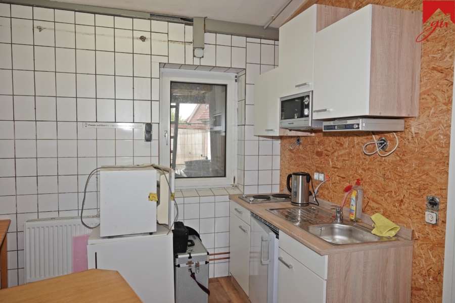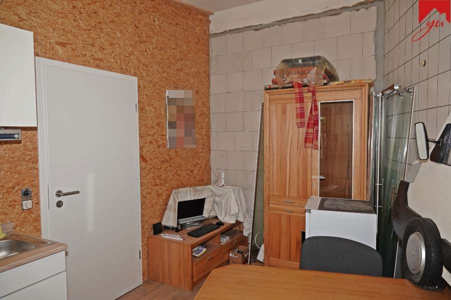 Im hintereren Bereich des Hauses befinden sich Lagerfläche und Abstellmöglichkeiten mit einem Sozialraum und einem WC.