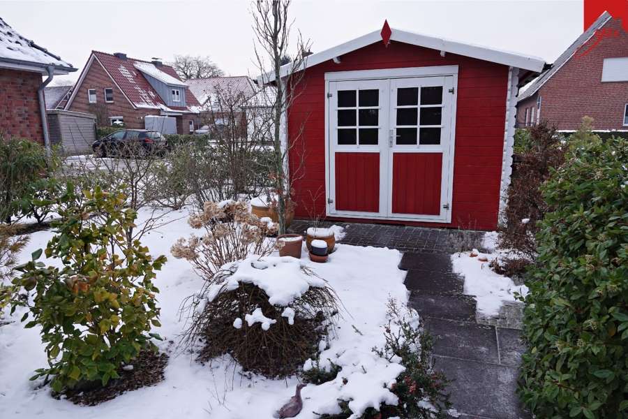 Im Außenbereich gehört eine schöne und geräumige Terrasse mit einem liebevoll angelegten Garten, ein schönes Gartenhäuschen, ein externer Abstellraum sowie ein fest zugeordneter PKW- Stellplatz.