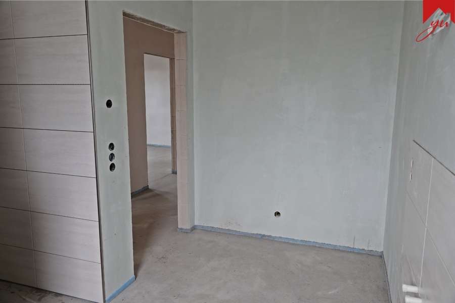 einen einladenden Wohnungseingangsbereich, einen hellen und lichtdurchfluteten Wohn- und Essbereich mit offener Küche inkl. ansprechender Einbauküche und Zugang zur Terrasse, ein geräumiges Schlafzimmer, ein Büro/Gästezimmer, ein modernes Badezimmer mit ebenerdiger Dusche und einen praktischen Hauswirtschaftsraum mit Waschmaschinenanschluss.