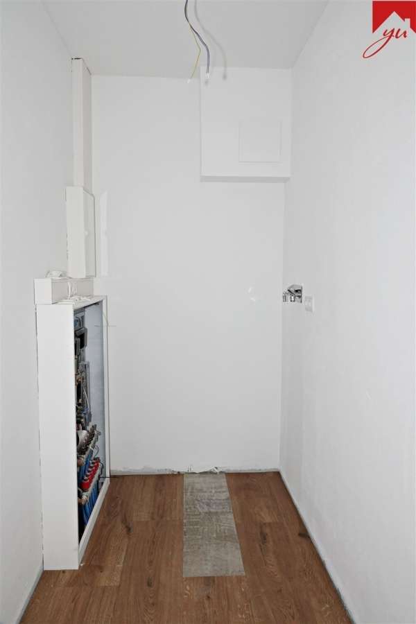 Aufgeteilt ist die Wohnung in einen Wohnungseingangsbereich, eine offene Küche, ein Wohn- und Esszimmer mit Zugang zur Terrasse, ein Schlafzimmer, ein Badezimmer mit Dusche und einen Abstellraum mit Waschmaschinenanschluss.