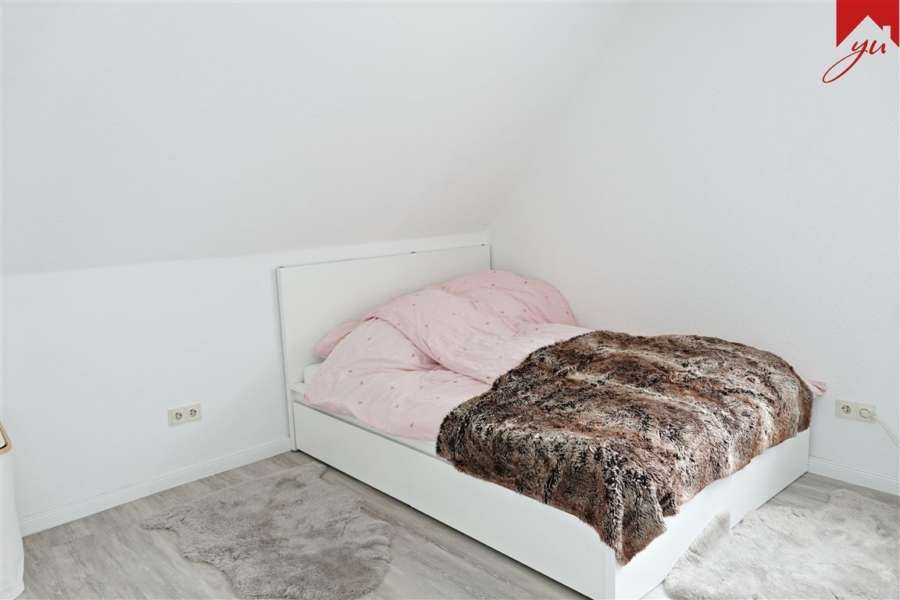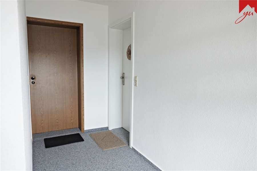 Die Obergeschosswohnung befindet sich in einem Dreiparteienhaus.