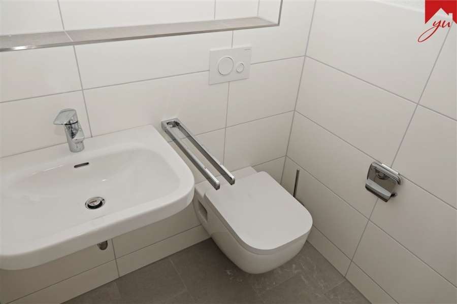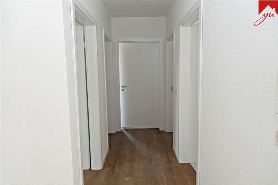 Die Wohnung befindet sich im Obergeschoss des Sechs-Parteien-Hauses und bietet einen hellen, freundlichen und vor allem barrierearmen Grundriss.
