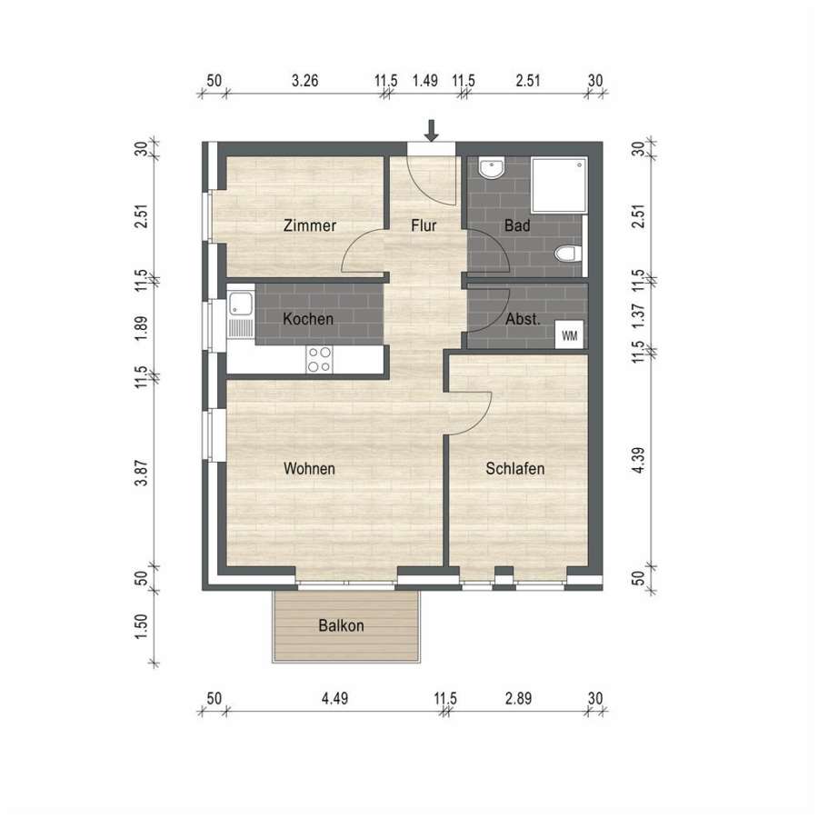 Die Wohnung befindet sich im Obergeschoss des Mehrfamilienhauses und bietet einen hellen, freundlichen und vor allem barrierearmen Grundriss.