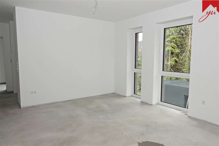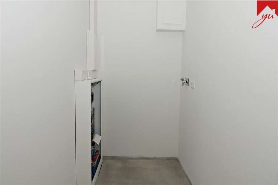 Aufgeteilt ist die Wohnung in einen Wohnungseingangsbereich, eine offene Küche, ein Wohn- und Esszimmer mit Zugang zum Balkon, ein Schlafzimmer, ein Badezimmer mit Dusche und einen Abstellraum mit Waschmaschinenanschluss.